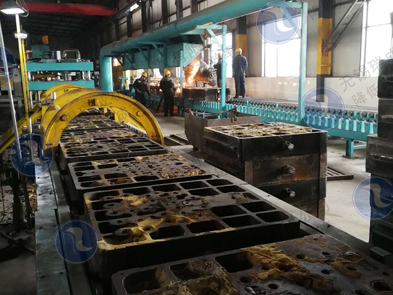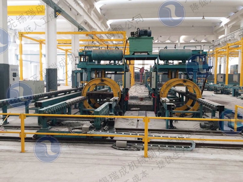 無(wú)錫瑞成鑄造機(jī)械設(shè)備公司設(shè)計(jì)制造的大規(guī)格鐵模覆砂鑄造生產(chǎn)線,主要針對(duì)船用車(chē)用發(fā)動(dòng)機(jī)曲軸、載重車(chē)橋殼、發(fā)動(dòng)機(jī)缸體等較大鑄件生產(chǎn)而開(kāi)發(fā)的,促進(jìn)了鐵模覆砂鑄造應(yīng)用優(yōu)先域的拓展。主要特點(diǎn)是鐵模的尺寸精度高和重量大,生產(chǎn)線設(shè)備剛性好,機(jī)械化程度高。