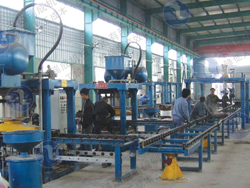 無錫瑞成鑄造機械設(shè)備公司設(shè)計制造的大規(guī)格鐵模覆砂鑄造生產(chǎn)線,主要針對船用車用發(fā)動機曲軸、載重車橋殼、發(fā)動機缸體等較大鑄件生產(chǎn)而開發(fā)的,促進了鐵模覆砂鑄造應(yīng)用優(yōu)先域的拓展。主要特點是鐵模的尺寸精度高和重量大,生產(chǎn)線設(shè)備剛性好,機械化程度高。